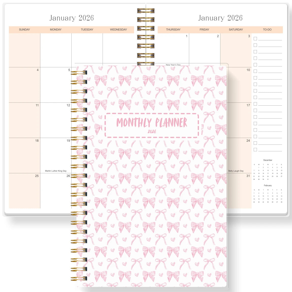 2026 A5 Monthly Planner,Pink Bow Cover,Academic Agenda with Notes&To Do List,Perfect for Productivity,Time Management,Great Gift