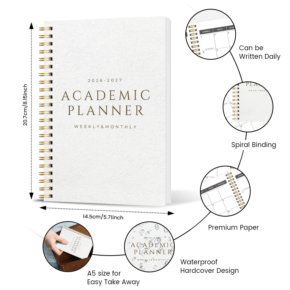 A5 Academic Planner 2026-2027, Weekly & Monthly Spiral Organizer, Student Agenda, Calendar with Notes, School Office Supplies