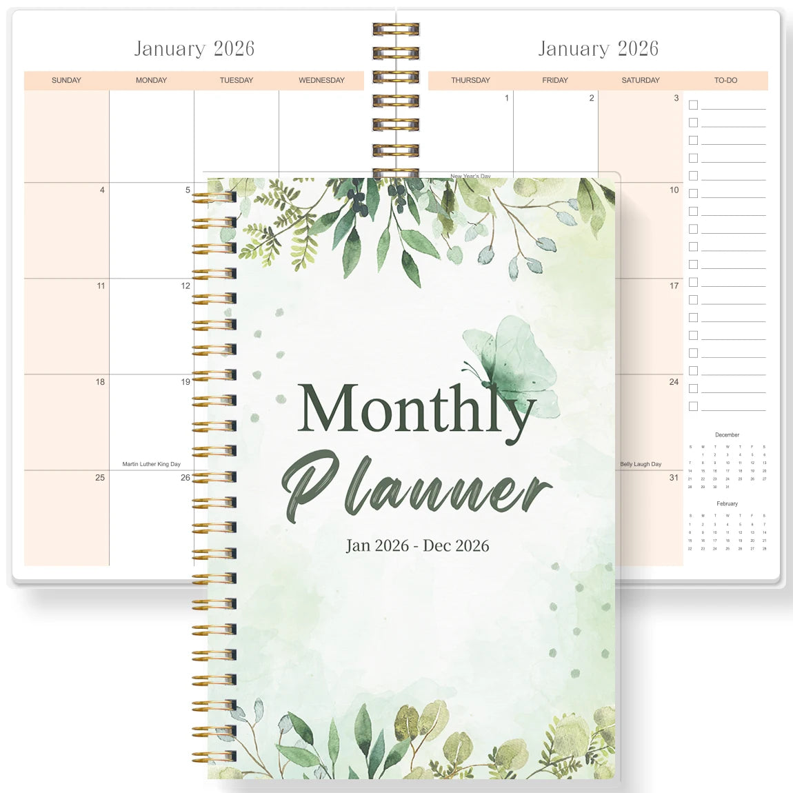 2026 A5 Monthly Planner,Green Butterfly Floral Cover,Academic Agenda with Notes&To Do List,Perfect for Time Management,Good Gift