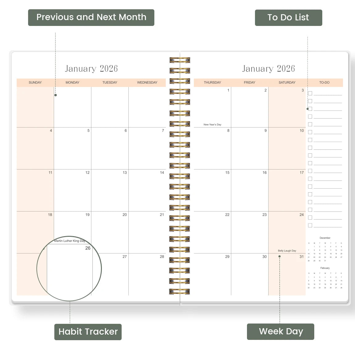 The A5 monthly planner format allows for easy monthly scheduling and planning.
