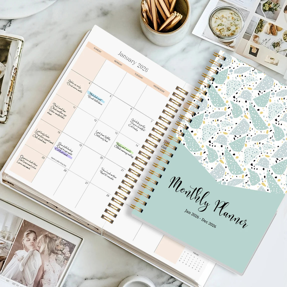 The 2026 A5 Monthly Planner features a minimalist blue cover, offering a sleek and modern look for your daily schedule.